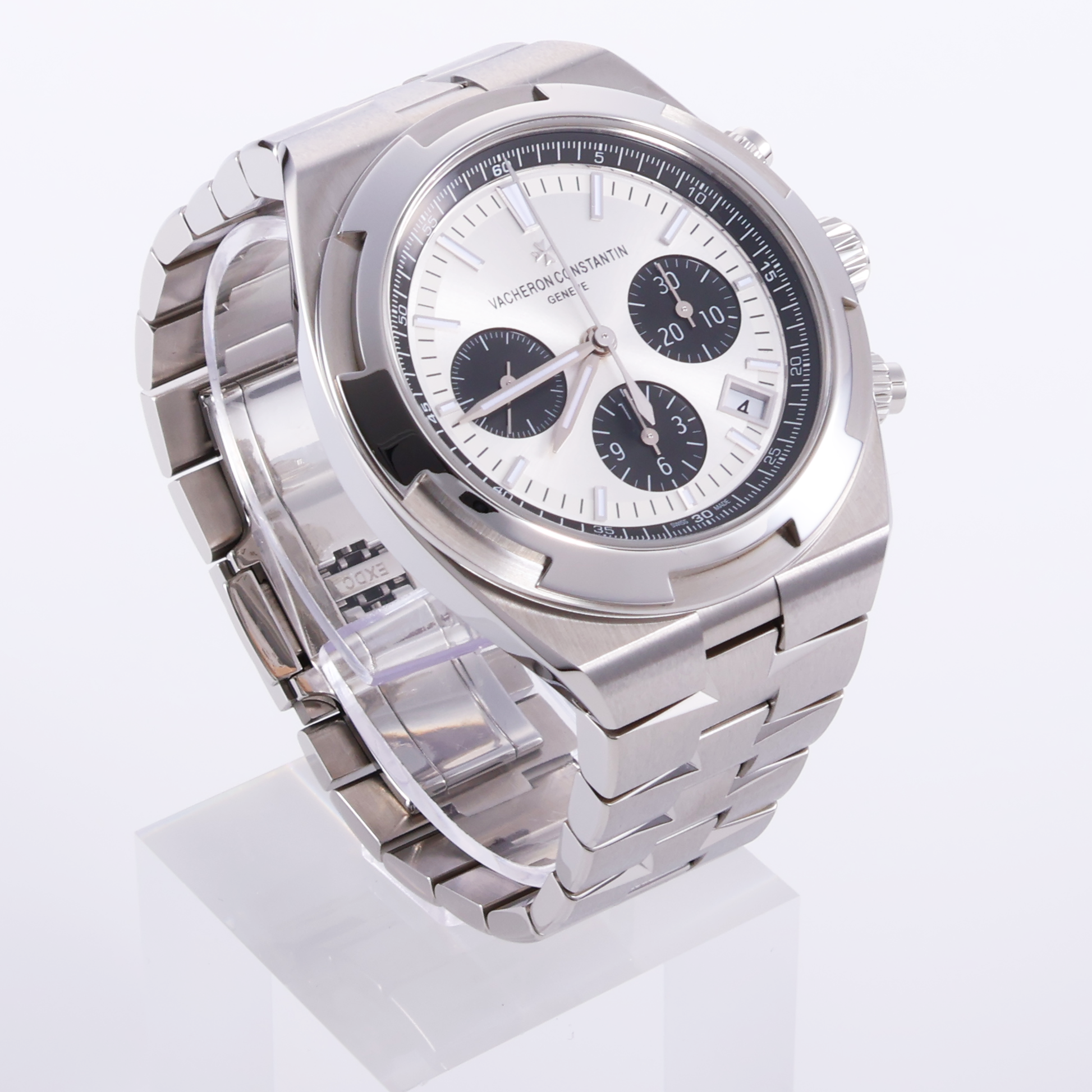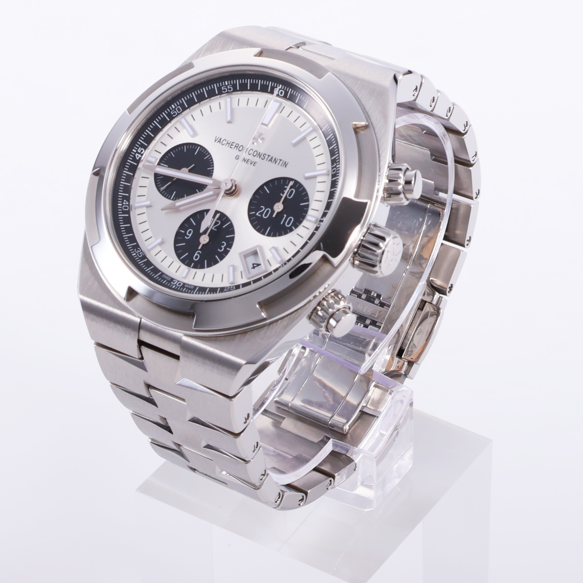 備考 全体的に綺麗な状態で、未使用と判断できます。入手困難なモデルの一つであり、シルバーダイヤル+ブラックインダイヤルの通称「パンダ」ダイヤルと親しまれているモデルです。エレガンスとカジュアルさを兼ね備えており、シルバーの文字盤にブラックのサブダイヤルを配したコラムホイール・クロノグラフが特徴です。